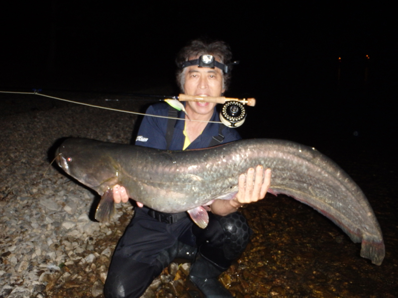 普段は、湖底の水深20〜50mに住んでいますが夜になると中層若しくは表層に迄浮上し餌をあさります。従って、狙う時問帯も夕暮れから明朝迄となります。しかし、瀬田川や宇治川の様な河川では、しばしば大雨で濁りが入りこの様な時は日中でも狙う事が出来ますが、琵琶湖の本湖で狙う時は、予め回遊してくるポイントを絞らなければなりません。広い琵琶湖に向かって闇雲にキャストしてもビワコオオナマズに当る確率は殆ど無いと言って良いでしょう。