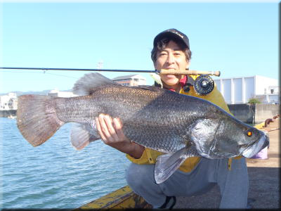 基本的に夜間が狙い目になるため、フライは比較的見やすい派手なものが良い。 しばしば、ベイトフィッシュの群れについているため、ベイトフィッシュのサイズとシルエットに合わせると効果的