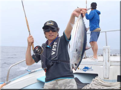 このフライは比較的大型のカツオを狙う為のフライで、キハダやメバチにも効果がある。 魚のサイズによってフックの番手を小さくする。ノンウェイトでよい。
