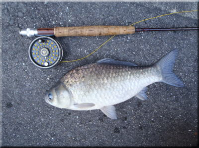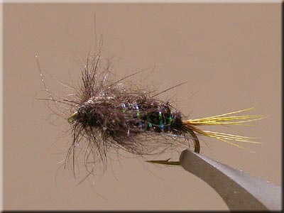 ヘヤーズイヤーニンフと呼ばれるタイプでボディーは、ダビング材でハックルはオリーブか黒が良い。 サイトフィッシングで狙う為、ラインはフローティグが使い易い。