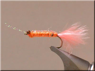 オキアミをチャミングして集めて釣る為、基本的にはアミエビのイミテーションで良いが、サイトフィッシングの場合は白系のフライの方が見易い場合もある。