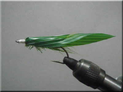 水面でアシの葉などを捕食している時に使う。 ウィング材はコンビニ弁当に入ってるビニール製バランを使う。 ただし、浮力がないため、ボディはグリーンのディアヘア。 基本的にサイトフィッシング、特に草を食っている口元に浮かせて狙うのがコツ。