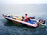 近年、琵琶湖等で走り回っているバスボートは元々、アメリカ本土で行われている、バストーナメント様に設計されたボートで、如何に早くポイントへ到着し、そして効率よくバスを探し、そして釣ったバスを生かしたままウェイン会場へ持込む事を重点に設計されています。 しかし、一般にトーナメントバサー以外の釣人がプライベートで琵琶湖のバス釣りを楽しむとした場合、トーナメントバスボートが必ずしも琵琶湖に合っているかと言うとそうでも無い訳で、先ず、琵琶湖と言う特殊なフィールド?は止水域の多いアメリカ本土のリザーバーと違い、まるで外洋のごとく波が立つ事もよくあります。その為、琵琶湖でバスボートを所有している人の多くが振動による故障に悩まされている様です。波のある時に、バスボートを滑走させるとハル(船底)に打ち付ける波の衝撃は想像を絶するもので、まるでコンクリートにボートを打ち付けているかの様な衝撃があります。その為、ハルが剥離したり振動で電気系統に故障が生じたりと思わぬトラブルが起こります。一番良いのは、波のある日にはボートを出さない事ですが、そうは行かない事でしょう。 本当ならば、最初から波に強いボートを選べば良いのですが、一般に波に強いとされるV底がきつく、吃水の高いボートはカッコの点から若い人達には受けが悪い様です。やはり、Vのゆるい吃水の低いトーナメントバスボートに人気が集中しています。