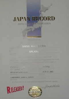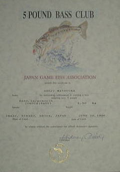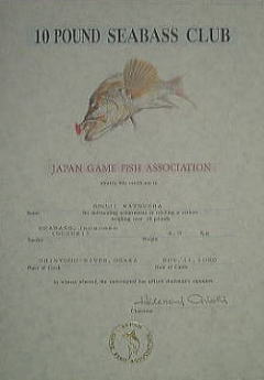 日本記録魚リリースの認定書。 | 8lbラインでのサワラの日本記録 兵庫県須磨沖 |