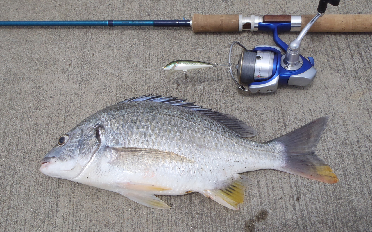 クロダイよりやや汽水を好む。性質も荒く、ミノータイプのルアーや
