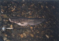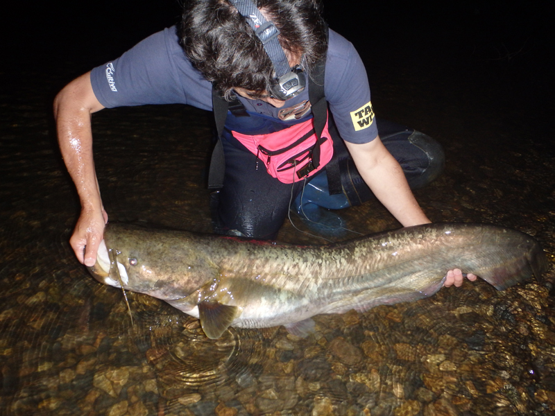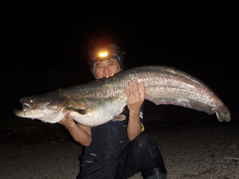 ビワコオオナマズは、学名Silurus Biwaensisと言います。Biwaensisと言うくらいで、琵琶湖の特産種ですが、琵琶湖から流れ出る瀬田川・宇治川、それに稀に淀川本流にも生息しています。
