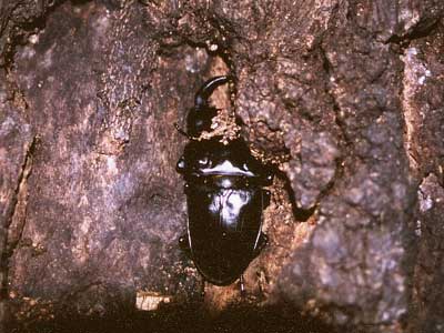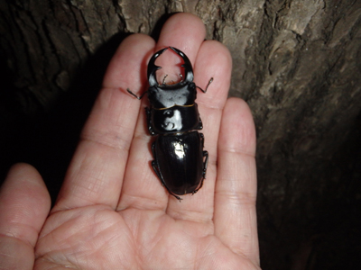 同じ洞穴性のヒラタクワガタ(Dorcus titanus pilifer)もオオクワガタと同じで、クヌギやナラの木を媒体としていますが、どちらかと言うと、ヒラタクワガタはオオクワガタより高い位置に迄生息している様な気がします。それに、明らかに住み分けが行われているみたいで、ヒラタクワガタの多い森で、オオクワガタを採集した事は1度もありません。又、1本の木からオオクワガタとヒラタクワガタを同時に採集した事も殆どありません。やはり、どちらもある程度のテリトリーがあり、住み分けがされている様です。しかし、コクワガタ(Dorcus