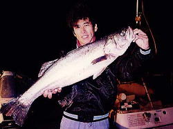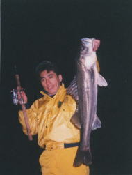 [70〜75=110:1] [75〜80=390:1] [80〜85=1150:1] [85〜90=3860:1] [90〜95=7870:1]と、この数字はいったい何を現わした数字か分かりますか?実のところ、この数字こそ1999年に大阪港周辺をエリアにシーバスのガイドをしている、あるガイド船が1年に釣らせたシーバスの大きさと数匹の比率を数字にしたものなのです。確かに乗せるお客さんによっては、数釣りを好む人もいますが、このガイド船の船長さんは決して最初から数釣りはさせないそうです。この数字を見て先ず分かる事は、シーバスが大きくなればなる程釣れていないと言う事です。70〜75cmのシーバスだと、110本に1本の割で釣られています。それが、80cmまでになると390本に1本、更に85cmまでだと1,150本に1本しか釣れません。となると、ベイエリアで85cmオーバーが釣りたければ、1,000本以上のシーバスを釣らないと巡り合う事が出来ないと言う事です。(あくまでも数字上の事)そして、ランカーシーバスとも言える90cmオーバーだと、何と7,870本に1匹しか釣れていないと言う事です。これくらいになると、普通に釣っていたのではベイエリアでは90cmクラスは、ほぼ不可能と言う事になります。あらゆる魚種について言える事ですが、大型になる程その数は少なく、シーバスの場合80cmクラスに達するまでには約12年くらいかかっているとの事です。(場所によって違う)特に、ベイエリアにはスズキ(マルスズキ)は多く、数に関してはかなりのストックがあると思われますが、大型のシーバスと言う事になればこの比率から見ても決して多くはありません。したがって‘大型シーバス=釣れない’のが当たり前となりますが、実の所大型シーバス(ここでは取りあえず90cm10ポンドオーバーの事)を釣った事の無い多くの人は、その釣り方を知らないか数釣りに走ってしまっていて、自ら巡り合う確率を下げている人だと思います。それならば、大型シーバスだけを狙って釣る釣り方があるのか?と言う事になります。はっきり言って、あります!但し、誰でもが必ず釣れると言う保証はありませんが、巡り合う(釣れる)確率をかなり上げる事が出来るのは事実です。