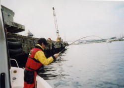 | 大阪ベイエリア(ボートから) | 大阪南港にて(ボートから) | 橋脚に着いていたビッグワン! |