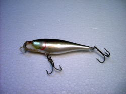 バルサ材ならではの浮力を生かしたキビキビとしたアクションは、今も世界中のルアーマンに指示されている様です。しかし近年、日本製のルアーには目覚しい進化と言うか、改革がありました。重心移動システムやタングステンのバラストが内臓されたルアー等、飛距離を出す事においては、世界中のラパラを遥かに越えてしまっています。けれども、いくら飛距離が出てもルアーのアクションはバルサルアーにはかないません。となると、バルサのルアーで尚且つ飛距離が出るルアーがベストと言う事になります。一部のメーカーには、バルサボディで重心移動システム内臓のルアーも市販されていますが、高価な事と大きさに限度があります。(バルサの場合、小型のルアーだと内臓システムが使えない)となると、当然ウェイトアップと言う事になりますが、普通は必要以上にウェイトアップするとルアーのアクションが悪くなります。しかし、バランスの取れた(肝を突いた)ルアーは、少々の事ではバランスを崩す事はありません。