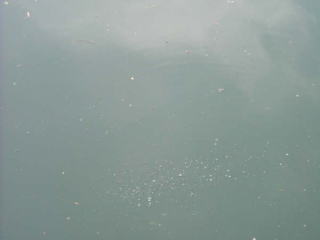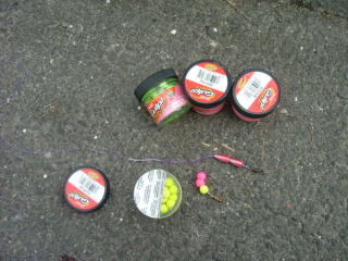 又、もう一つの手段として、チャミング(撒き餌)によって活性を上げ、食わせる方法があります。チャミングする場合も同じで、泡付している少し上流から、コイの吸込餌を2〜3センチの球状に丸めた物を、少しずつ撒いてから泡付が止まるのを待ってリグをキャストします。これでも食いが悪い時は、仕掛けそのものに集魚効果のあるネリ餌を付け、そこから伸ばしたリーダーに球状のソフトルアーを付けて釣る方法等もあります。又、クラブメートの三村誠氏の様に、球状のソフトルアーを今流行のヘアリグ(フックのシャンクの延長上に伸ばしたラインに球状のソフトルアーを2〜3個通して使う)にして、実績を上げている人もいますが、やはりソフトルアーを使って釣ると、生のエサを使って釣るより大型のコイが釣れる事は確かです。それに最近のソフトルアーの開発には目を見張るものがあります。これほどよく食い、生餌と違って、保存が出来、さらには100%成分解し、自然に帰るというのもすばらしい事だと思います。