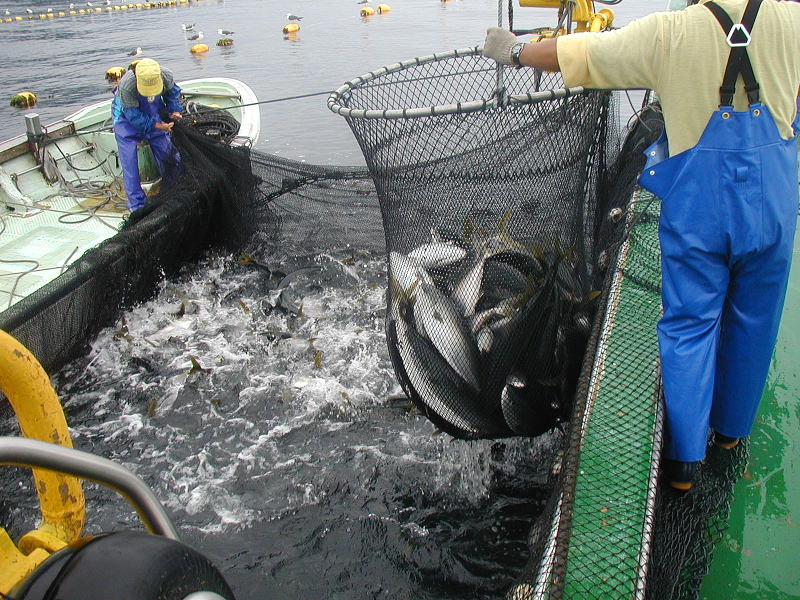 | 定置網の水揚げ。日本海はブリ、ヒラマサの宝庫! | この仕事をしていると、こんなアクシデントに見舞われる 事もあります。 |