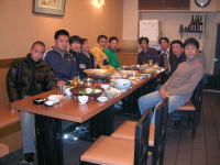大阪市北区にある、うどん店(長久)にて2006年度の後期ミーティングと忘年会が開かれました。 ミーティングの議題は例によってなにもありませんでしたが、忘年会はうまい鳥鍋を囲んで昔話や少しヤバイ近況報告で終時まで大変盛り上がりました。 |