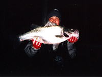 この日は寒い日で、夜中の2時頃が満潮でした。am3時30分頃、カレントにそってキャストしたジップベイトにヒットしました。今年最後に釣れた体高のあるヒラスズキでした。 |