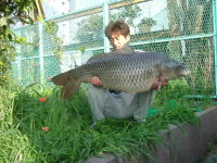 一ヶ月前に釣ったコイの記録(30lbライン)を自ら破ることができました。コイも1メートルを超えると食性が変わるようです。大川で釣ってる鯉釣り専門の人たちは、餌にザリガニや唐揚、ソーセージ、ちくわ、かまぼこetcなども使っています。当然、集魚剤入りのワームも良く喰います。 |