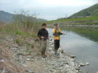 揖保川にサツキマスを狙いに行ってきました。今年は水量がなく、サツキマスの気配もありませんでした。長堀氏とウグイを一匹づつGETしただけで、撃沈です。 「長堀さん、6月の北海道に期待しましょう」byマツウラ |