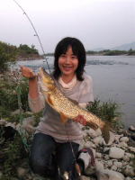 この日、会社の友達とサクラマスが釣れるかもという話を聞いて、福井県まで出かけました。 しかし、水温が低いのと川の濁りのためか、会社の友達のルアーにも反応がなく、結局ニゴイ一匹でした。 地元の人の話では、「サクラマス釣りには早すぎる」と言われてしまいました。 |