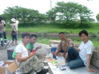 SPLASHのフライメンバーによる、ゴールデンウィーク恒例のバーベキュー&フライフィッシングに行ってきました。 この日は暑いくらいの晴天に恵まれ、コイも水面でボケ状態で、パンを撒くなり簡単に餌付けに成功。 ところが、最近コイがスレ気味で、かなりナーバスになっていたため、フライパターンのセレクトに少し苦戦しましたが、最終的には必殺の食パンスペシャル(発砲スチロール付き)で激釣! 全員、コイの引きを堪能し、昼からは昔ながらの七輪で焼き鳥と焼肉、それと冷えたビールで久々のストレス解消。 日暮れまで、おおいに盛り上がりました。 ゴールデンウィークはこれに限ります。 また来年行きましょう! |