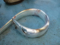 魚体の真ん中くらいにスレ掛かりして揚がってきた太刀魚です。 引っかけられて最初に目に入ったのが、自分の体だったのでしょう。 |