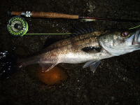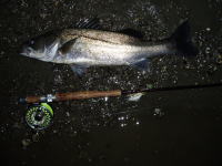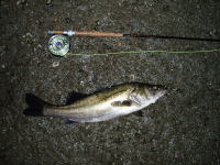 急に、大阪の営業所に出向くことになり、仕事が終わってから、大阪港岸壁にフライでシーバスを狙いに行きました。 バチ抜けも少しは見られたのですが、フライのパターンがあっていないのか、食わせるのに大変苦労しました。 結局、この日も1本に終わりました。 |