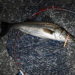 早朝から、藤岡さんに教えてもらったサーフでウェーディングして、ジグをフルキャストしました。 藤岡さんの話では、この場所はシーバスの他にヒラメやマゴチも狙えるとのことでしたが、結局、明け方にサゴシ一匹とシーバス一匹に終わりました。 結構寒かったです。 |