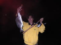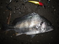 コメント: 大阪の事務所の帰り、松浦さんから情報をもらって、舞洲に行って来ました。 ナトリウム灯の下でボイルしているセイゴを小型のストリーマーで狙ってみました。 60cmクラスも目撃したのですが、全く無反応でした。 |