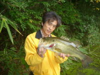 近くに来たのでと、私の家に松浦さんが寄ってくれました。 ちょっと近くの池にいってみますか?ということで松浦さんが、拾ったスイムベイトで、なかなか釣れない50cm級のバスを、さすがです。 |