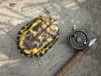大学時代の友人の近くの川で、パンを撒いてコイを狙ったのですが、ヒットするのはカメばかり。 こんな田舎の川にまで外来種が侵略しているとは思いませんでした。 |