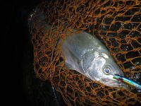 地元の釣り友とアカメを狙いに行ったのですが、夕方から豪雨となり、早々に退散してきました。 結局雨の降る前に釣れたタイリクスズキ一匹でしたが、地元の釣り友と久しぶりに会えて懐かしい話に華が咲きました。 |