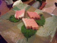 今年もSPLASHの後期ミーティングと忘年会が大阪市内の飲食店で行われました。2011年度の収支報告と来年の活動の予定について話し合われたあと、引き続き恒例の忘年会が開かれました。 今回はSPLASHのメンバーで外資系水産会社に勤めるマリー嬢からサンプルとして購入した大間のクロマグロの大トロ部分を差し入れとして頂きました。めったに食することのできない思わぬ高級食材にメンバー全員大感激! 今回も大ジャンケン大会が行われ、カラー限定のレアなルアーなどが掘り出され、やはり、キング オブ ジャンケンこと畦田昇司氏の独壇場でした。 (画像は大間産クロマグロの大トロ、一切れウン千円!) |