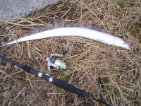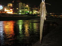 出張で泉佐野市へ行った帰り、明け方まで車の中で仮眠して早朝からシーバスを狙ったのですが、釣れたのはタチウオ4本でした。 |