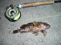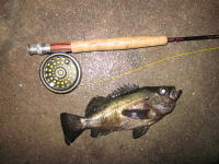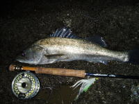 堺に出張の帰り、加太の地磯でシュリンプパターンでフライを試してみました。 根掛かりばかりで、大変苦戦しましたが、日暮れと同時に2匹をキャッチ。 |