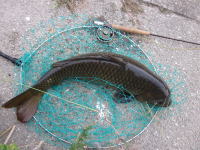 この日は、海が荒れた為、予約していたジギングは中止になってしまいました。 昼から腹いせに淀川のコイを釣りに行って来ました。 干潮時に食わせた1匹(画像のコイ)は、とんでもないメタボでした。 |