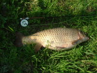 工場の近くの川で、コイをサイトで狙ってみました。 以外に簡単に食わせる事が出来ました。 |