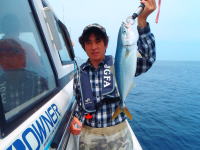 松浦 昌治 ロッド:11ftSPLASHカスタム ライン:PE1.5号 ルアー:アスリート12cm ジグミノー9cm |
