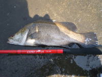 出張の帰り、前回シーバスを釣ったポイントへ行って来ました。 表層にメナダの群れを発見。 シュリンプパターンで食わせる事が出来ました。(後で聞くまでは、ボラだと思っていました(笑)) |