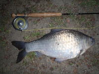 昨年、コイを爆釣したポイントに新たなフライパターンを持ってトライしました。 パンをチャミングしないで狙ってみたのですが、なかなか手強いです。 この日も3時間でやっと1匹。 |