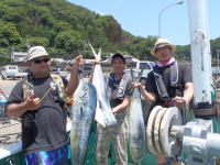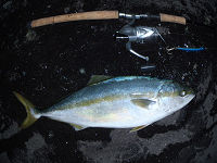 | 2012年7月21日 和歌山県 友ヶ島 ハマチ50~60cm 9匹 サバ35~45cm 約20匹 シーバス50cm 1匹 |