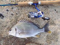 自作のフライを試してみるべく、長浜の漁港に出かけました。 サイトで2匹、出来ればもう少し大きいのが釣りたかったです。 |