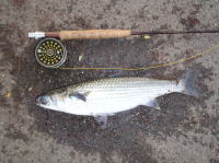 仕事の関係で三重県に行った時に立ち寄った漁港で、ボラの大群を発見。 エサ釣りをしている人の横で、フローティングエッグパターンで食わせる事が出来ました。 |