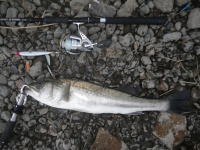 そろそろ秋の海かな?と思い仕事のついでに調査してきました。 しかし本命の太刀魚は留守。シーバス60cmばらし・・・ その後GETした今年最少シーバスです。。。。 |