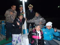 予定していた10月のジギング大会は都合で中止となり、急遽、白浜の代々丸を貸し切って、恒例のSPLASHジギング大会を行ないました。 夕方出船し、明るいうちは椿沖でカンパチを狙ってみましたが、撃沈。 日暮れと同時にバラムツ狙いにシフト。この日は北寄りの風が強く、寒くて、波が高く、船酔い者続出のなか、次々とアタリがあり、3本のバラムツがキャッチ&リリースできました。 今回は、最後に170cmをリリースした大阪の畦田氏が優勝。豪華賞品? をゲットしました。 全体にバラムツは少なかったのですが、久々に会うメンバー同士、大いに盛り上がった夜でした。 |