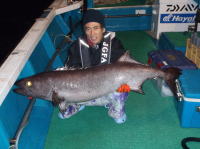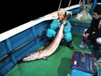 参加者 新藤 良一 森本 武司 三村 誠 長堀 寛 畦田 昇司 小西 雅樹 松浦 昌治 ロッド:ジギングロッド ライン:PE5号 リーダー:130lb ルアー:メタルジグ300g ベイト:サバの切り身 |
