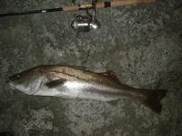 夜間の満潮を見計らってバチヌケパターンのシーバスをやってきました。 電灯の下にたまにボイルするシーバスめがけてロングキャスト。 10匹程バイトしたのですが、釣れたのは2匹だけ。 まぁこんなもんです。 |