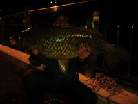 日が暮れるのを待って得意のポイントへ行って来ました。 パンを撒くこと10分、最初の1匹が78cm。 2匹目はティペット切れに終わりました。 |