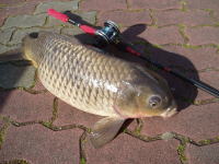 仕事の帰り、山本さんに教えてもらったポイントへ行って来ました。 パンを大量に撒いてやっと1匹釣る事が出来ました。 |