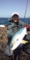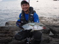5月13日、高知県西部の沖ノ島で磯から青物狙いで行ってきました。 この日、魚の気配は薄く、朝イチにダイビングペンシルへ勢いよくヒットしてきた一本で終わりました。 70センチ後半のメジロでした。 |