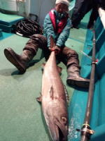 新藤良一 ロッド:ジギングロッド ライン:PE5号 リーダー:130lb ルアー:メタルジグ300g ベイト:サバの切り身 |