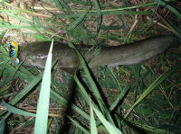 実家に帰ったついでにいつものクリークに行って来ました。 3匹泳いでいたうちの1匹をサイトで食わせました。 |