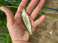 取引先の知り合いの近所の川にライギョとナマズとブラックバスがいるという 情報を聞いて行って来ました。 しかし釣れたのは、これ1匹だけでした(笑)。 |